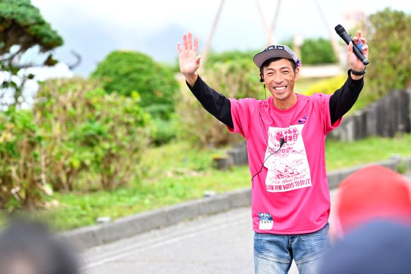 ヘルメット越しに見える笑顔が楽しさを物語っている4回目の参加丸野さん。