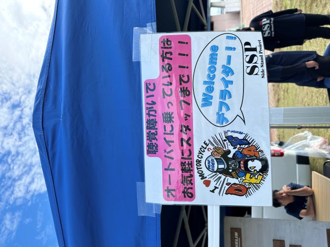 公益社団法人SSPは、昨年に続き九州での出店をし防災を含めたイベントに日頃の準備などの必要性を改めて教えて頂きました。またSSPブースでも障がいを抱える方にきて頂きオートバイ体験を致しました。