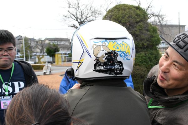 4度目の体験走行会となった明見さん。今回は愛車のバイクのイラストの入ったマイヘルメットを持参。「腕に力が入っちゃって、緊張もしていたので、前半で体力を使っちゃった感じでした。でも箱根のツーリングを目指してこれからトレーニングも頑張ります」と語ってくれました。