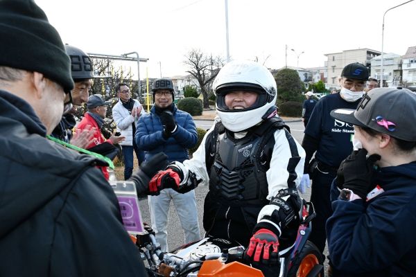 3回目の参加となった脳性麻痺の松崎さん。「寒さもあってか身体がガチガチ。さらに走行でも緊張でガチガチでした」とコメントしていましたが、乗車中も乗車後も満面の笑みで「課題が見つかったので次回はそれを克服できるようにしたい」と非常に前向きです。